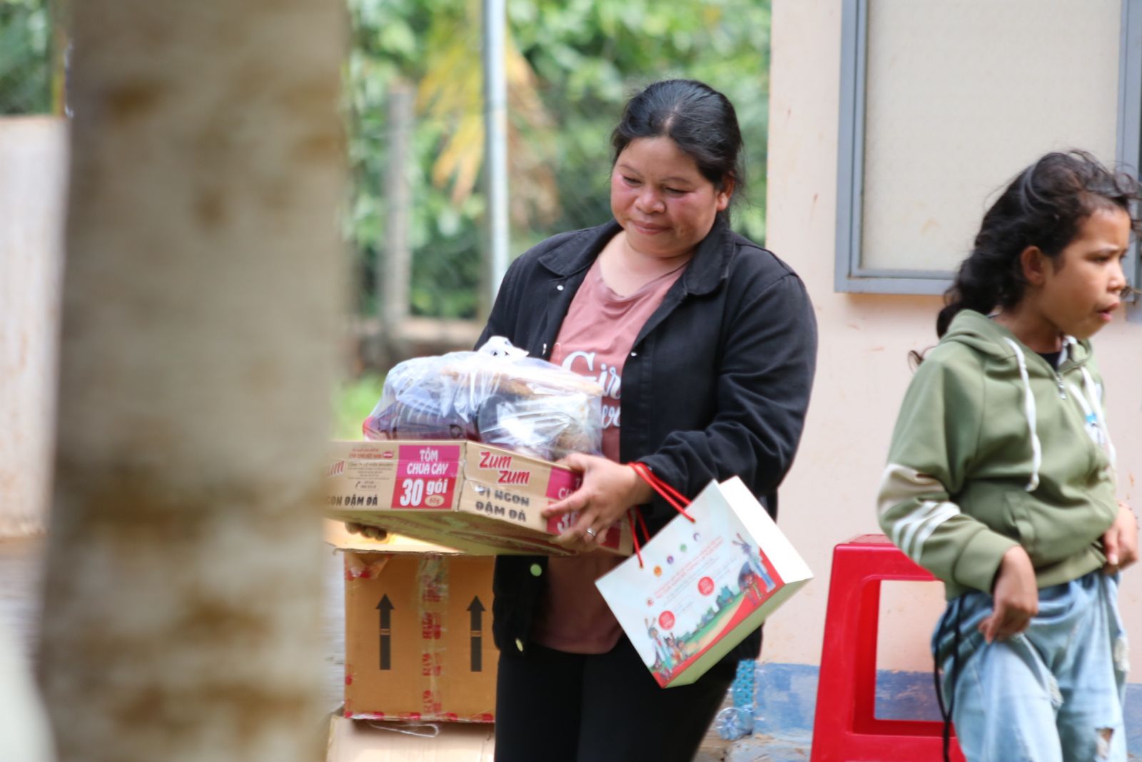 Song song với việc chăm sóc sức khỏe, đoàn đã trao tặng nhiều phần quà thiết thực, gồm khô mắm, mì gói, quần áo, chăn mền và gấu bông cho trẻ nhỏ. Những món quà tuy đơn giản nhưng phù hợp với nhu cầu thực tế, góp phần hỗ trợ bà con ổn định lại sinh hoạt sau khi nhiều vật dụng bị hư hại vì mưa bão. Đối với các em nhỏ, những chú gấu bông còn mang đến niềm vui tinh thần, giúp các em cảm thấy được quan tâm và nâng đỡ giữa hoàn cảnh khó khăn.