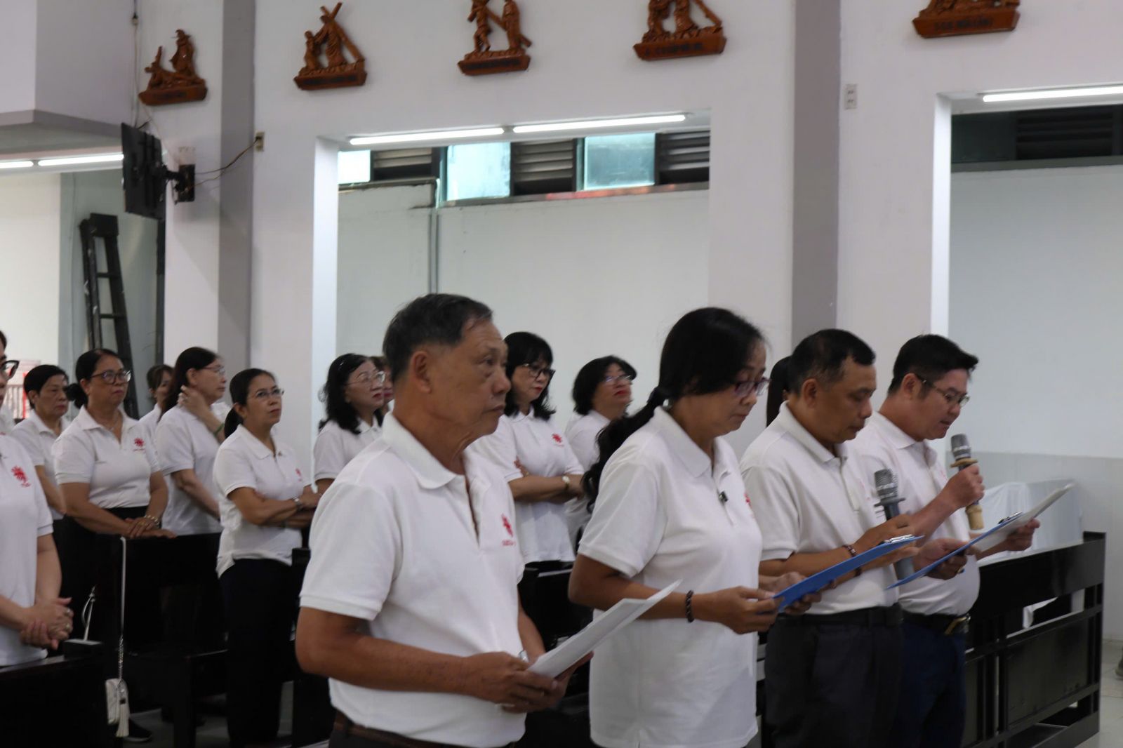 Khép lại phần chia sẻ, cộng đoàn cùng bước vào Thánh lễ Tạ ơn tất niên trong bầu khí sốt sắng và hiệp thông. Thánh lễ khởi sự với đoàn rước kiệu Thánh giá từ cuối nhà thờ tiến lên cung thánh.