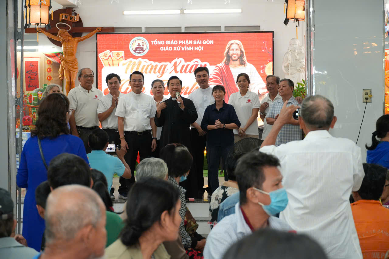 Khoảng 10g sáng ngày 01.02.2026, sân nhà xứ Vĩnh Hội dần đông người. Không có sân khấu lớn hay chương trình cầu kỳ, chỉ là một buổi gặp gỡ cuối xuân ấm áp, với sự hiện diện của Cha Chánh xứ Giuse Huỳnh Thanh Phương, Cha Phó Anphongsô Nguyễn Hoàng Ngọc Anh, linh mục Gioakim Phạm Chiến - Trụ sở TGM Huế tại Sài Gòn, anh Blasio Nguyễn Hữu Tuấn - Trưởng ban Caritas hạt Xóm Chiếu, quý nữ tu, Ban Caritas giáo xứ, Hội đồng Mục vụ, quý trưởng - phó các giáo khu và đông đảo bà con có hoàn cảnh khó khăn trong và ngoài giáo xứ.