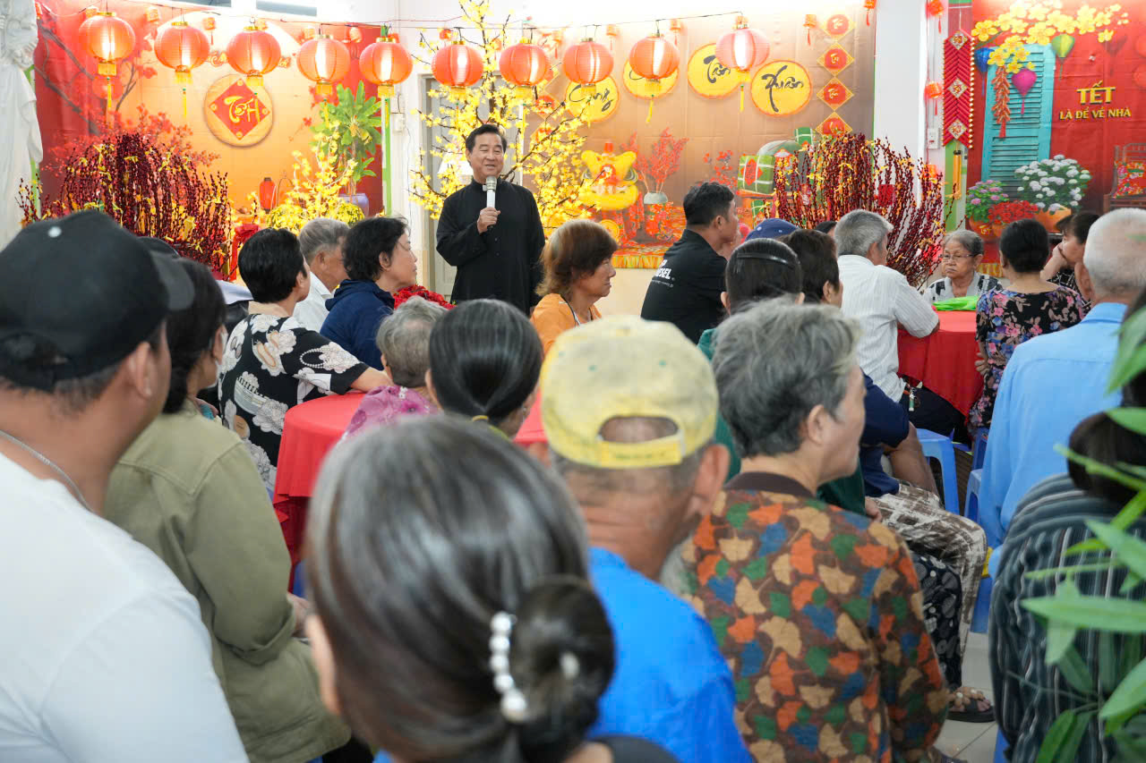 Chia sẻ thêm với cộng đoàn, Cha Phó Anphongsô Nguyễn Hoàng Ngọc Anh nói về tinh thần hiệp hành theo cách rất gần. Cha giải thích: hiệp là cùng nhau, hành là cùng bước đi. Qua đó, Cha nhắn nhủ rằng bữa cơm hôm nay không dành riêng cho ai, bởi Tết là niềm vui chung. Với người Kitô hữu, phục vụ anh chị em cũng chính là đang phục vụ Chúa, và sự sẻ chia ấy không dừng lại trong khuôn viên nhà thờ mà tiếp tục lan tỏa trong đời sống thường ngày.