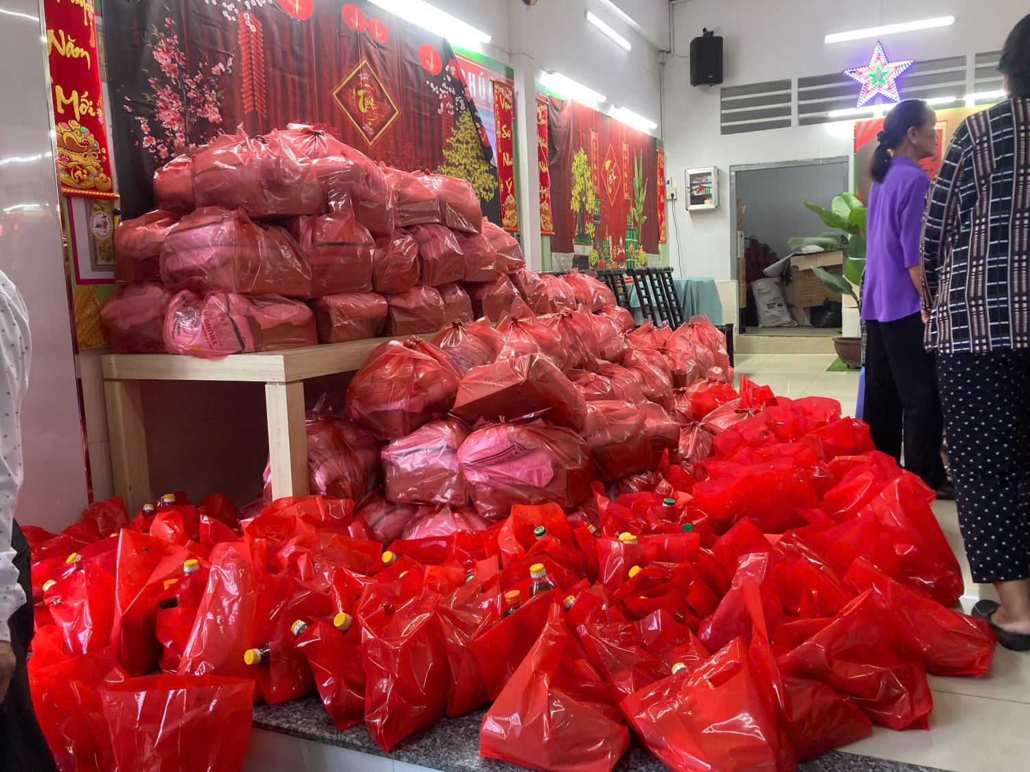 Sau bữa cơm là phần trao quà Tết. Giáo xứ chuẩn bị ba phần quà thiết thực gồm: mì gói - gạo; nước tương - dầu ăn - lạp xưởng; cùng một phong bì nhỏ để bà con lo thêm những ngày đầu năm. Khi các phiếu đã phát hết, vẫn còn một số người tìm đến xin hỗ trợ. Không để ai ra về tay không, giáo xứ nhanh chóng sử dụng phần dự trữ là mì gói và gạo để trao thêm - một quyết định vội nhưng đầy tình người.