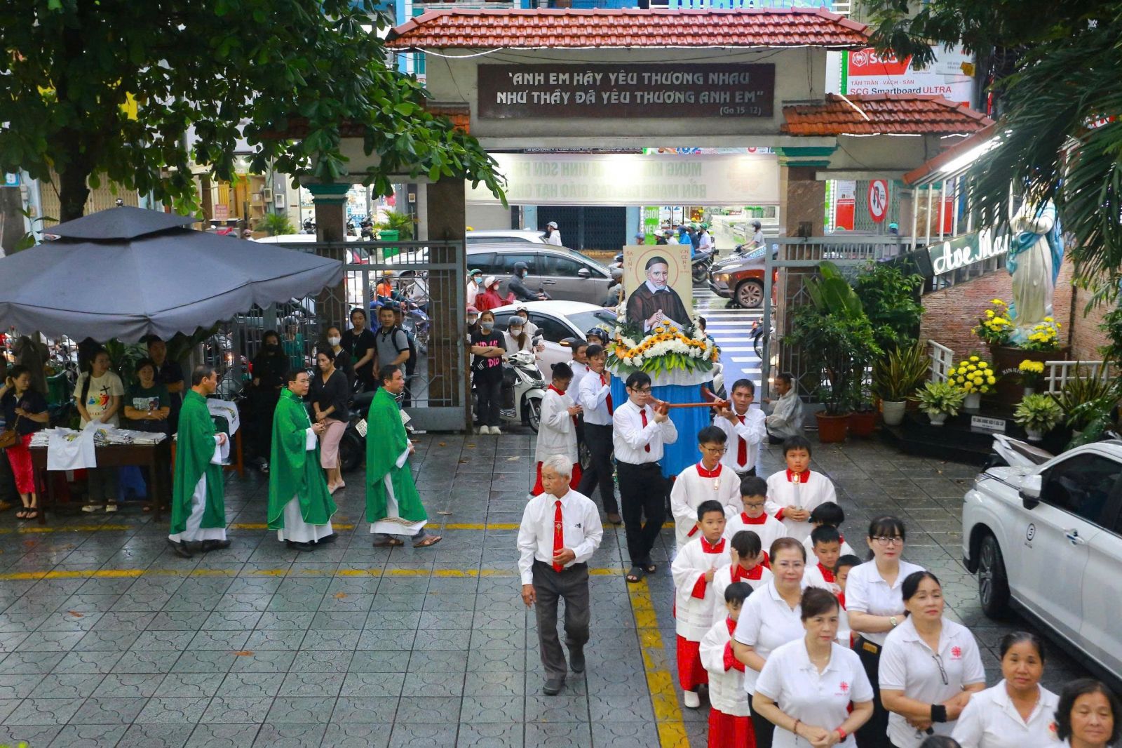 Thánh lễ bắt đầu lúc 17h30 với nghi thức rước kiệu Thánh Vinh Sơn Phaolô, do Cha Giuse Hoàng Kim Toan - Linh hướng Caritas Hạt Gia Định kiêm Chánh xứ Hàng Xanh - làm chủ lễ.