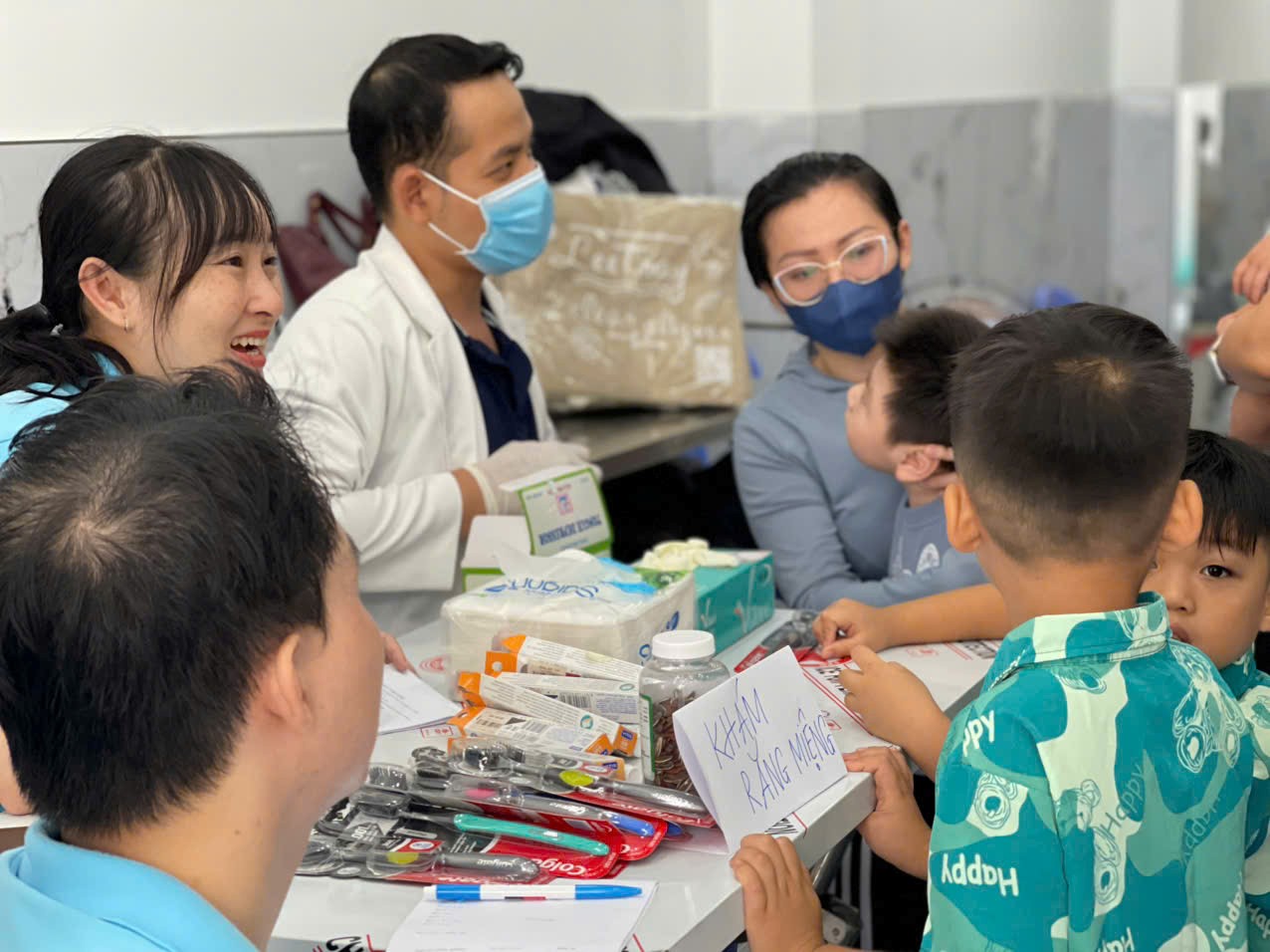 Các em được khám răng miệng miễn phí bởi nhóm nha khoa Lestray.