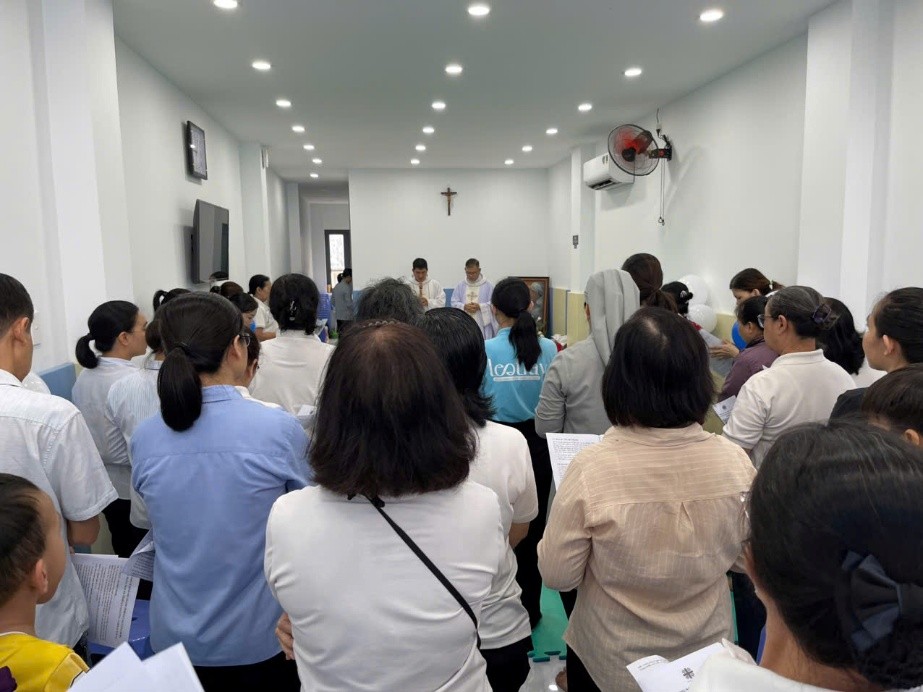 Ngoài việc hỗ trợ về môi trường học tập và chăm sóc các em còn được nâng đỡ về mặt đời sống tinh thần, chính vì vậy Thánh Lễ bổn mạng đã được tổ chức với sự hiện diện của Cha Giuse Phạm Thanh Bình - Giám đốc Caritas TGP và Cha Phó giám đốc Phêrô Phạm Kim Quyền MI, Quý Soeurs trong văn phòng Caritas, Quý cộng tác viên, các thành viên Caritas Giáo xứ Nhân Hòa, quý anh chị trong nhóm nha khoa Lestray cùng với các bé và phụ huynh.