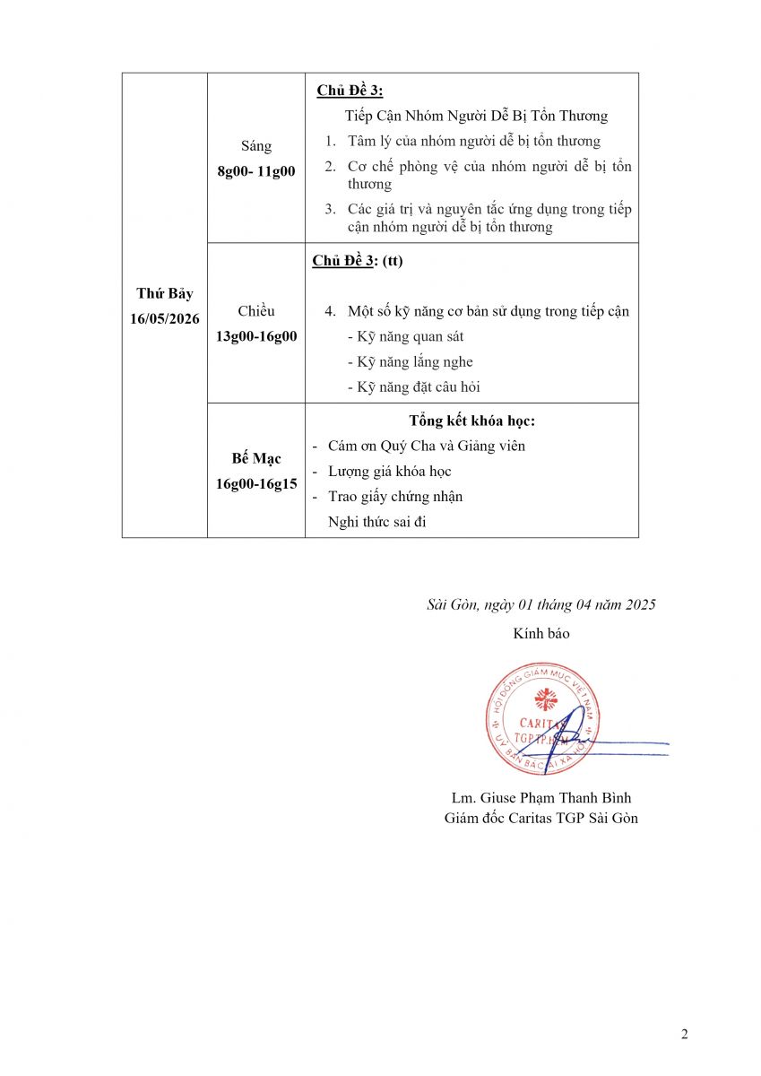 - Học viên hiểu và nắm rõ về Linh Đạo và tinh thần làm việc của Caritas.