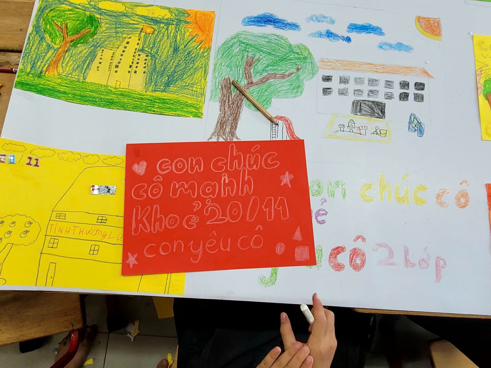 Tiếp nối không khí đó, trong buổi lễ 20/11, các em học sinh được tham gia hoạt động tìm hiểu về Thánh Gioan La San – vị thánh suốt đời dấn thân cho giáo dục và là người đã gieo vào thế giới thông điệp “Giáo dục là hành trình của tình thương”. Qua phần chia sẻ, các em hiểu hơn rằng việc được đến trường hôm nay là một món quà rất lớn đến từ bao tấm lòng.