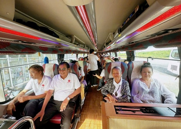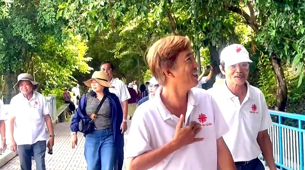 Đồng hành trong chuyến đi có chú Phêrô Nguyễn Văn Vịnh – Trưởng ban Caritas Giáo hạt Thủ Thiêm làm trưởng đoàn, cùng 44 thành viên đến từ 17 giáo xứ trong Giáo hạt.