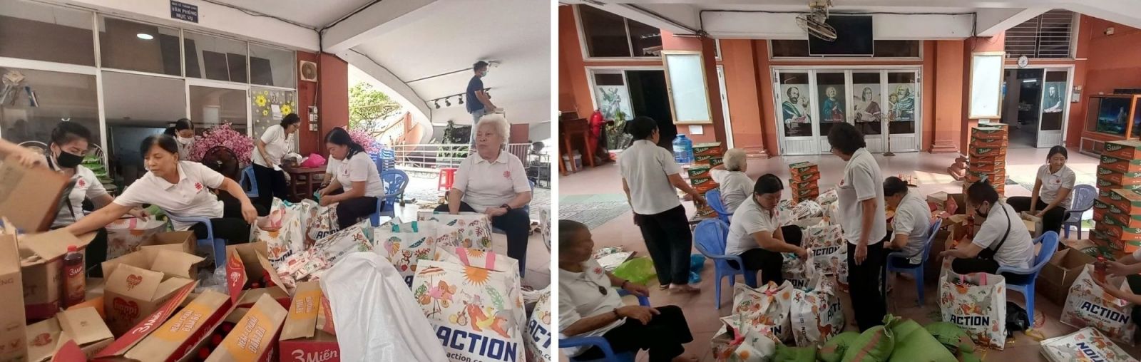 Trong không khí rộn ràng này, ban Caritas đã bắt tay vào công việc chuẩn bị quà Tết cho người có hoàn cảnh khó khăn và những người cần giúp đỡ.