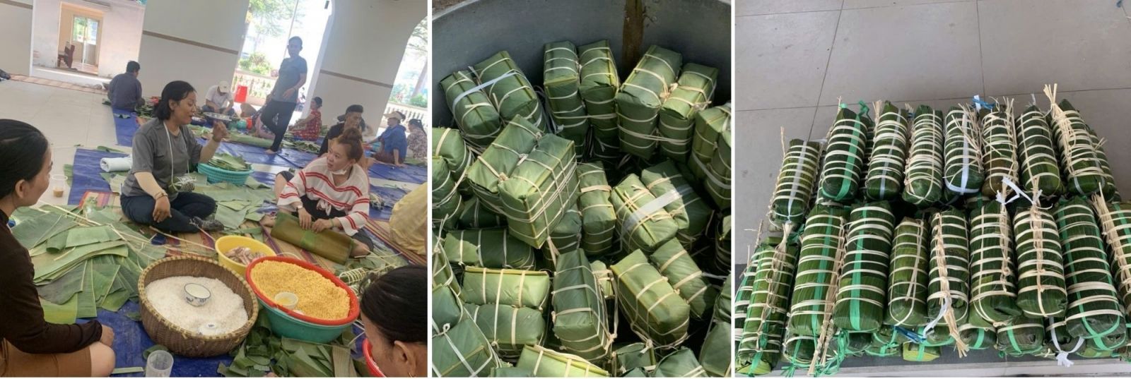 Còn gì hạnh phúc hơn khi các gia đình neo đơn được nhận chút hương vị ngày Tết đong đầy yêu thương từ những chiếc bánh chưng, bánh tét được gói tỉ mỉ từ sự chung tay góp sức của các anh chị em thành viên Caritas.