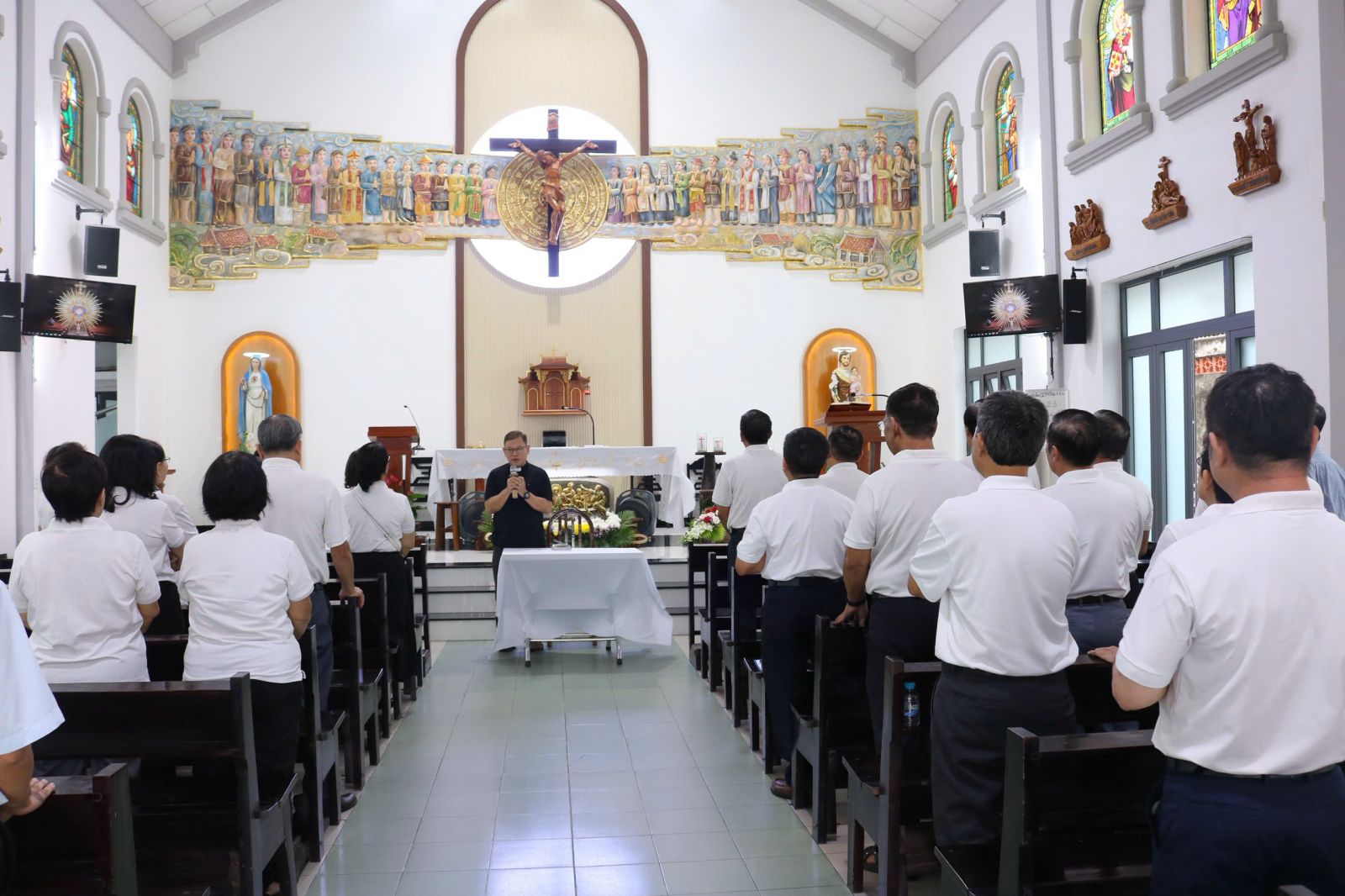 Khép lại phần chia sẻ, cộng đoàn cùng bước vào Thánh lễ Tạ ơn tất niên trong bầu khí sốt sắng và hiệp thông. Thánh lễ khởi sự với đoàn rước kiệu Thánh giá từ cuối nhà thờ tiến lên cung thánh.