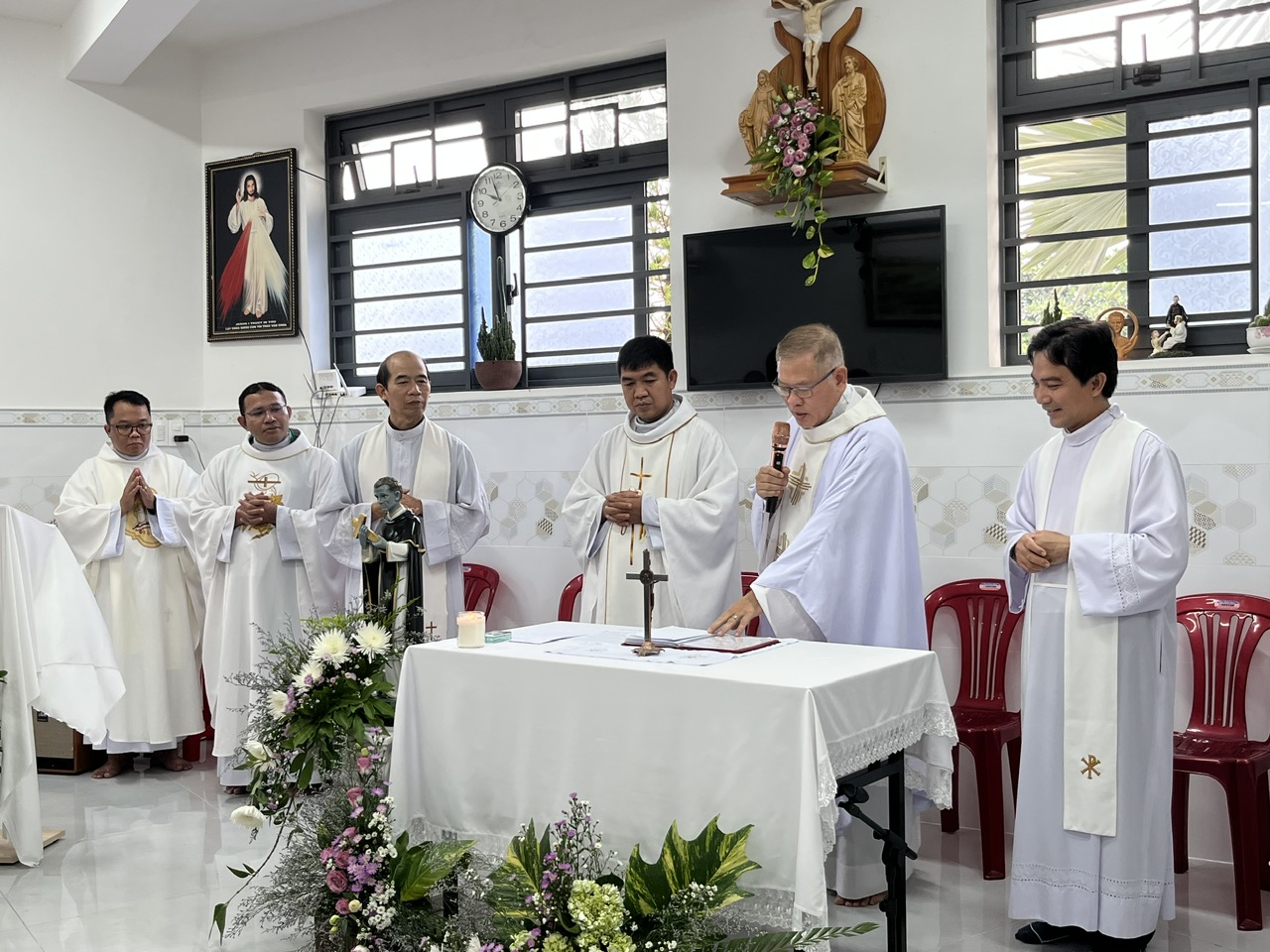 Hiệp dâng Thánh lễ có sự hiện diện của các bệnh nhân lưu trú, các nhân viên Văn phòng, Ban Y Tế Caritas và một số hội viên thuộc Caritas Tổng Giáo phận Sài Gòn, Quý nữ tu Dòng Augustino Bến Cát và quý ân nhân.