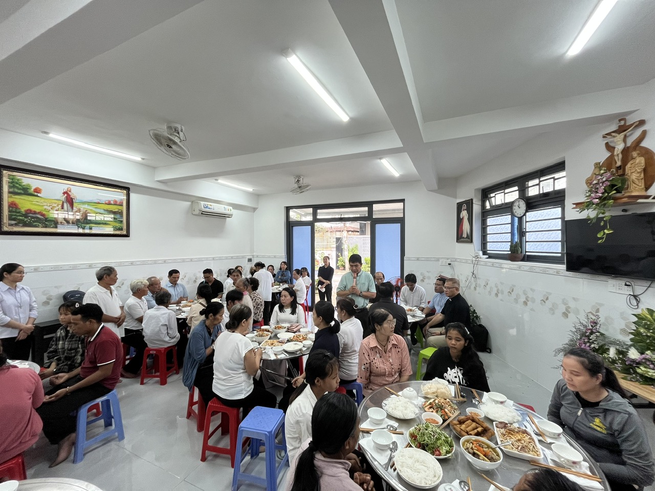 Sau Thánh Lễ mọi người đã cùng dùng chung bữa ăn trưa thân tình, những món ăn được quý ân nhân mỗi người một món cộng góp thành bữa ăn mang hương vị của yêu thương và chia sẻ.